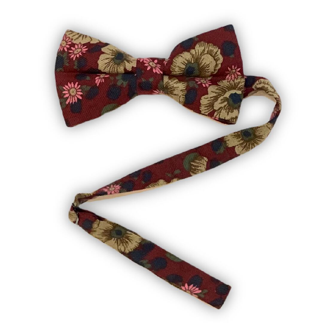 ボタニカル柄で優しさと個性を表現。ベースのワインレッドがオシャレな印象に。